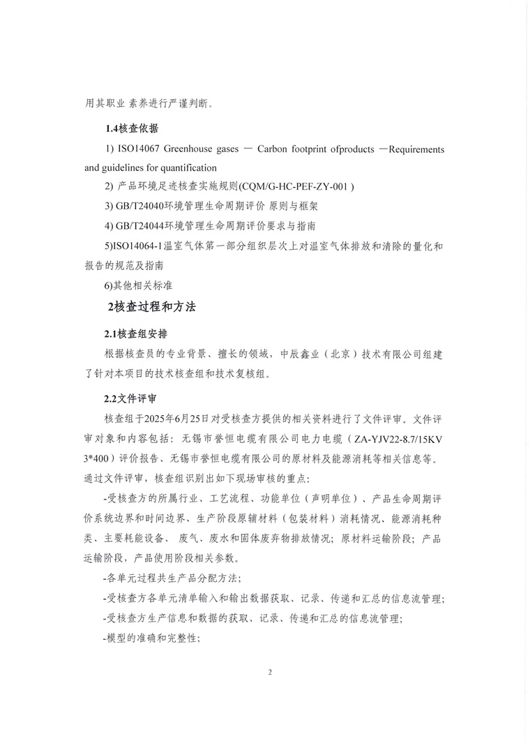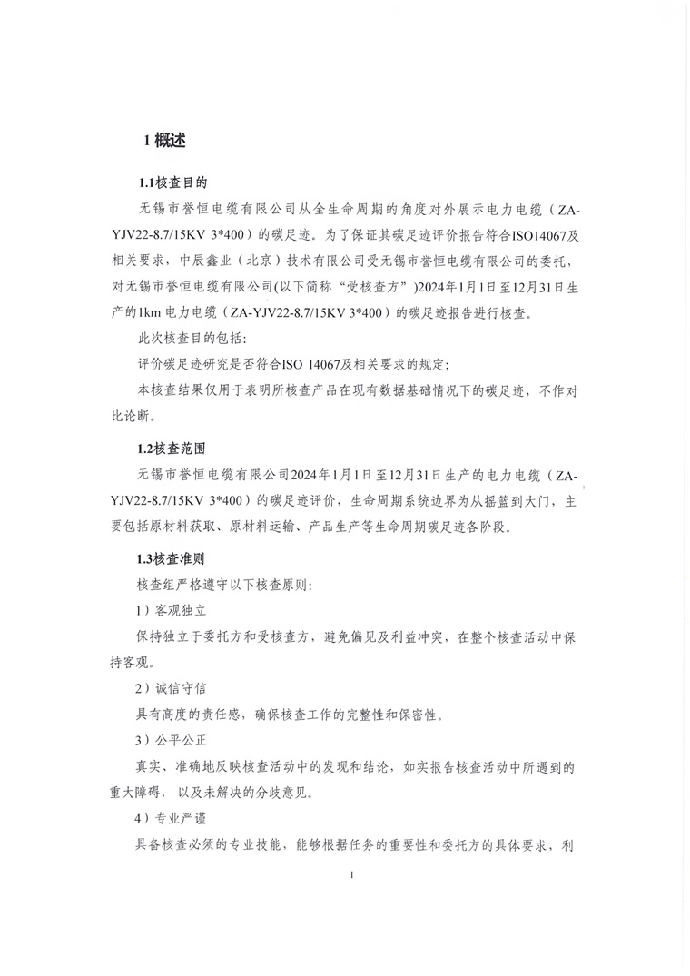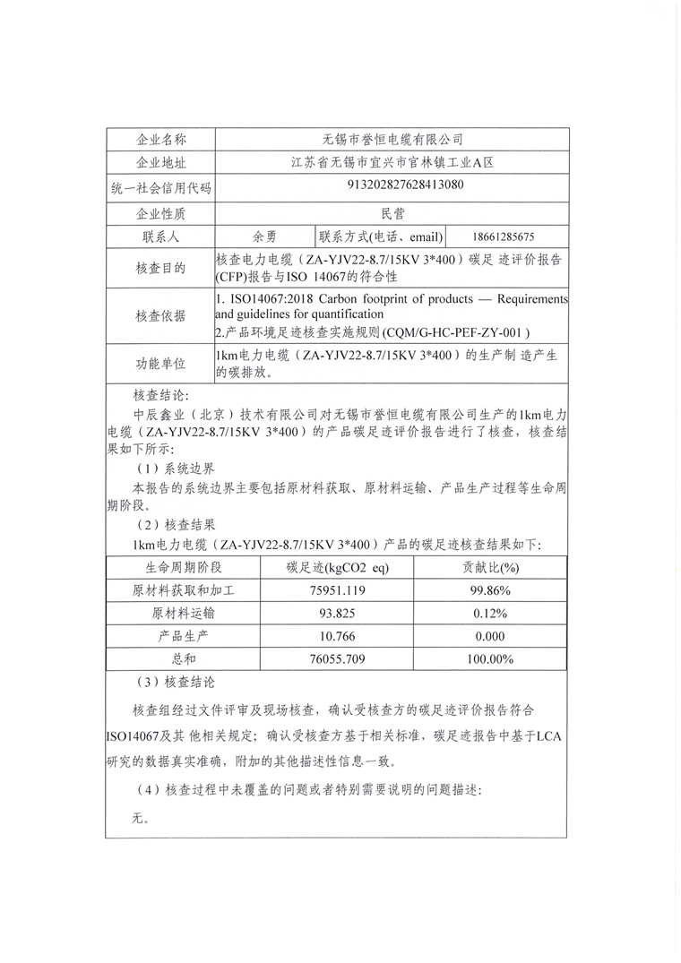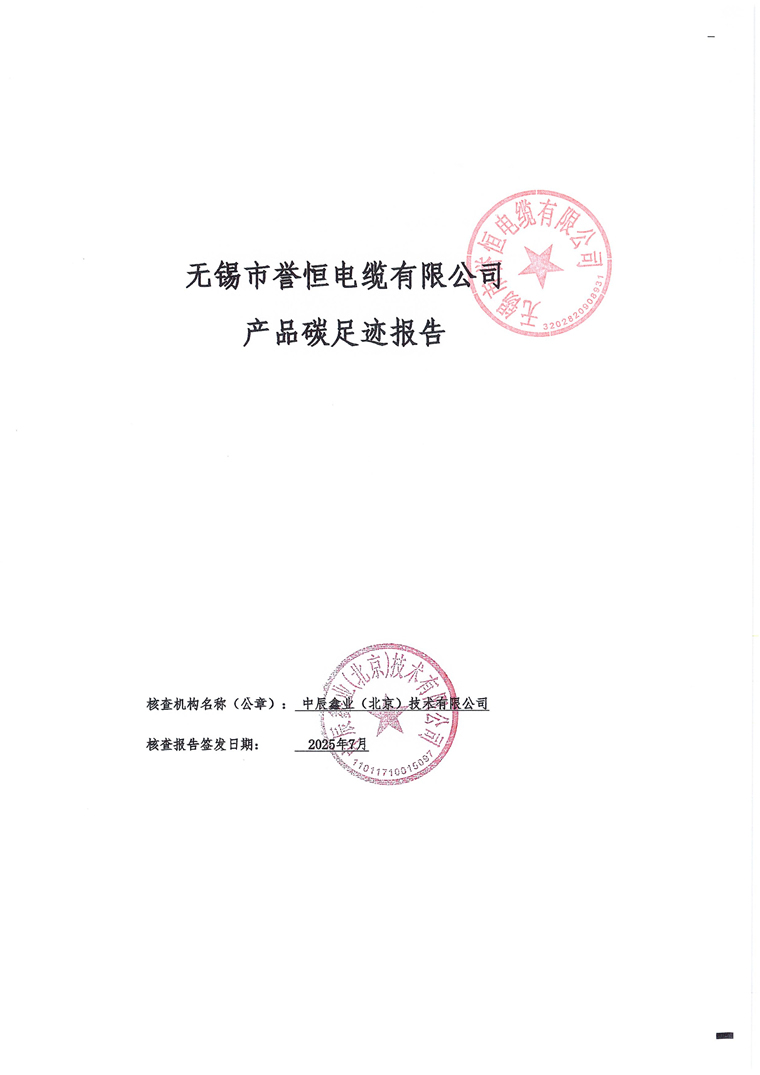产品碳足迹报告-无锡市誉恒电缆有限公司