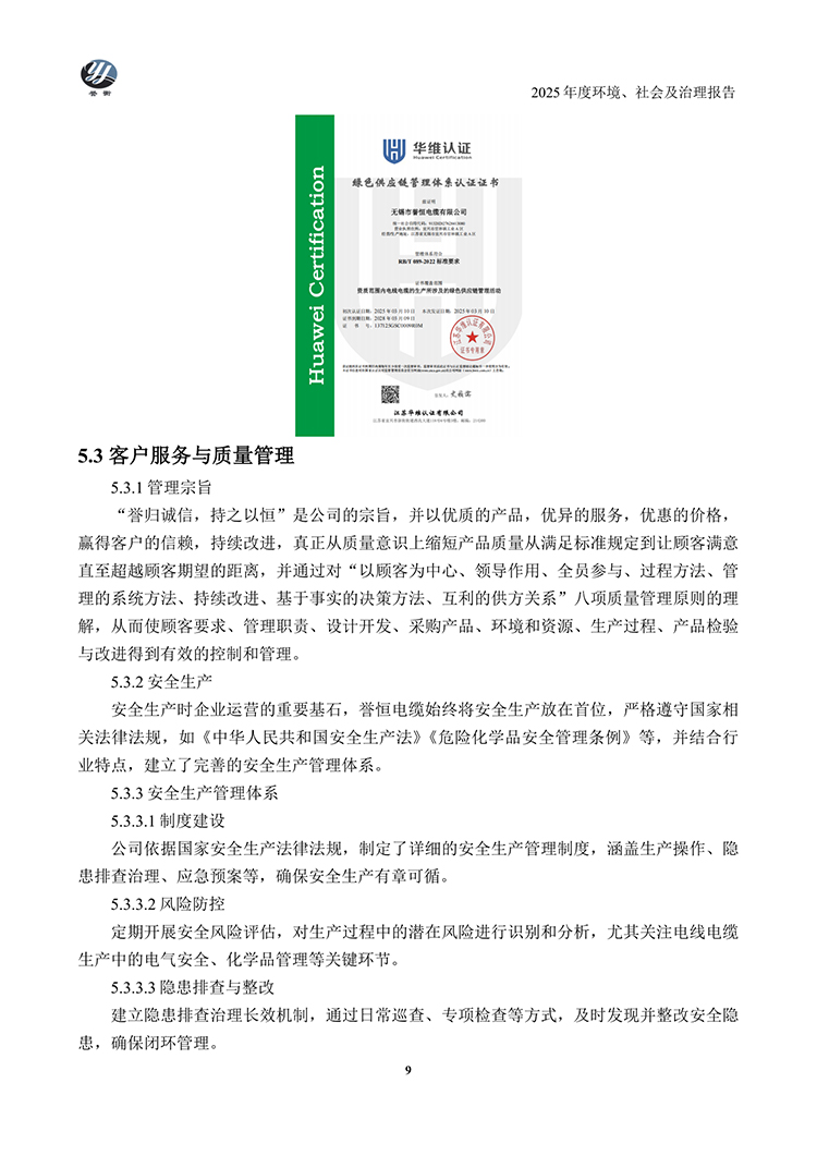2025年度环境、社会及治理(ESG)报告-无锡市誉恒电缆有限公司
